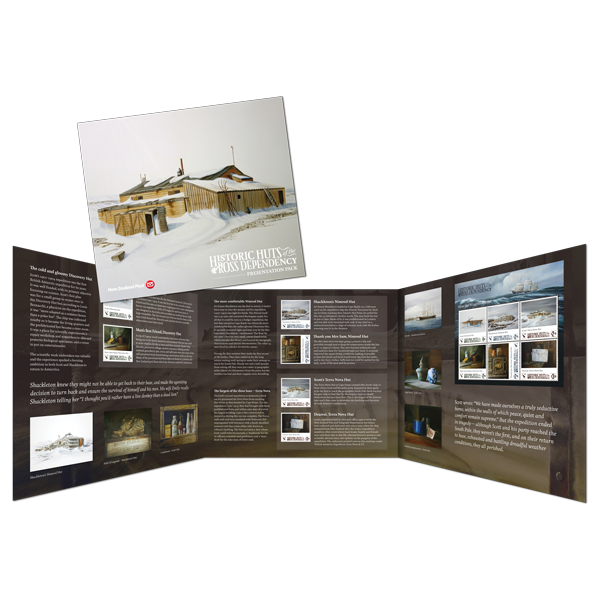 The limited edition had been written by the Antarctic Heritage Trust and contained all six stamps, a colour separation of the $3.30 stamp, and a specially numbered first day cover that had been signed by Nigel Watson, the Executive Director of the Antarctic Heritage Trust.