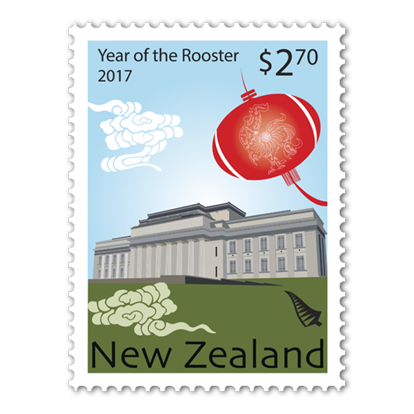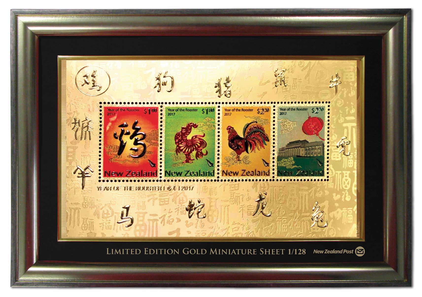 The Year of the Rooster began on 28 January 2017, and was celebrated in New Zealand and around the world. The rooster symbolises character traits of confidence, courageousness and resourcefulness, and was the focus of these festive stamps and gold-foiled collectables.
