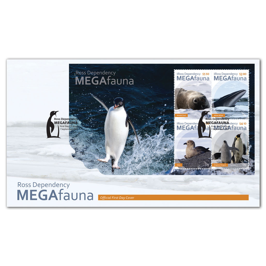 Presentation Pack | You could collect the miniature sheet, first day cover and full set of stamps with the Ross Dependency: Megafauna presentation pack. In it you found out more about the fascinating animals featured on the stamps and were treated to more close-up images of seals and penguins. | $35.50 |