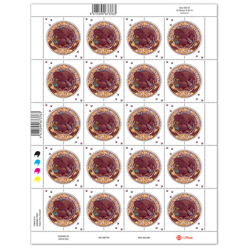 Sheet of 20 x $4.70 Kiwi pukupuku/little spotted kiwi stamps.