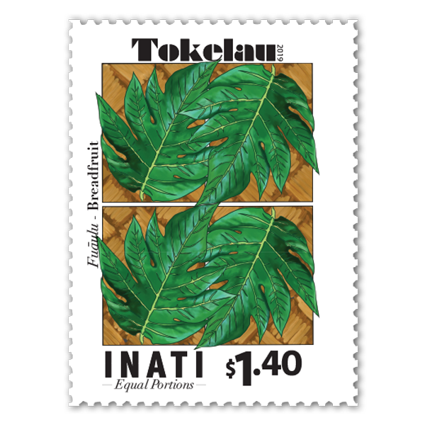 Unique to Tokelau, inati is a traditional community fishing and distribution system that is still practised today. The act of sharing food proportionally helps these isolated island communities to ensure the wellbeing of all households, big and small. These charming illustrated stamps highlight four traditional foods of Tokelau - taro, breadfruit, fish and coconut.